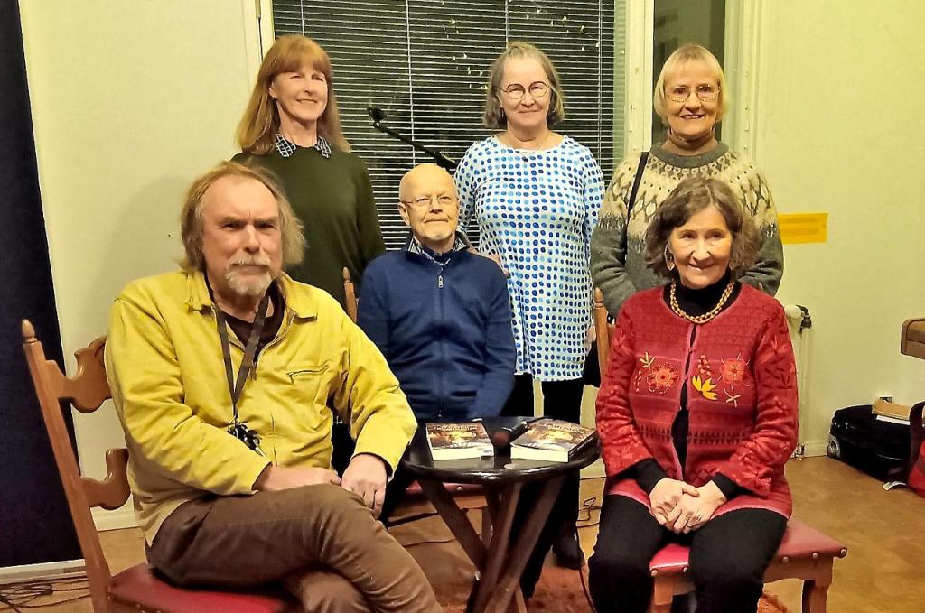 Keski-Suomen senioripsykologit Tiina, Jorma, Leena ja Seija osallistuivat kollegansa Marjatta Lehtovaaran (PiPsystä) Juhani Salmen kanssa kirjoittaman kirjan ”Seitsemäntoista simpukkaa” esittelytilaisuuteen Jyväskylän Kirjailijatalolla 8.11.2024.